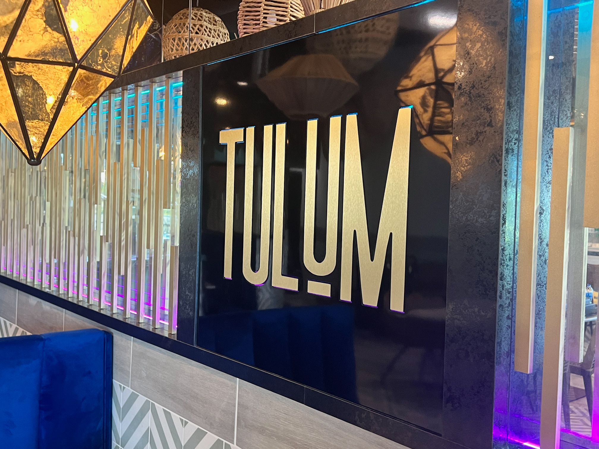 Black, Gold, and Glass LED Privacy Wall